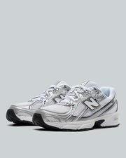 New Balance 740 Trainers in White, Silver and Black. Step into enduring comfort and classic style with the New Balance 740 Trainer. This beloved silhouette returns, blending heritage design with modern cushioning technology to keep you moving effortlessly through even the busiest of days.Inspired by the distinctive aesthetics of 2000s-era running shoes, the New Balance 740 boasts a timeless look that effortlessly integrates into any casual or streetwear ensemble. Its sleek profile and signature details create a versatile trainer that's ready for anything.
