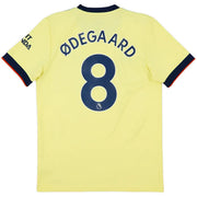 Away shirt as worn when the Gunners began the season disastrously, losing their first three games to drop to the bottom of the table. However, manager Mikel Arteta would turn the club's fortunes around by relying on the talented youth options available to him, favouring exciting attackers like Saka, Martinelli and Smith Rowe ahead of established veterans Aubameyang, Pepe and Lacazette. With the fanbase in raptures over the resurgence of the Arsenal style of play of yesteryear, the new-wave Gunners would go on to blitz the Premier League, rapidly climbing the table and forcing themselves into contention for a top-4 finish.