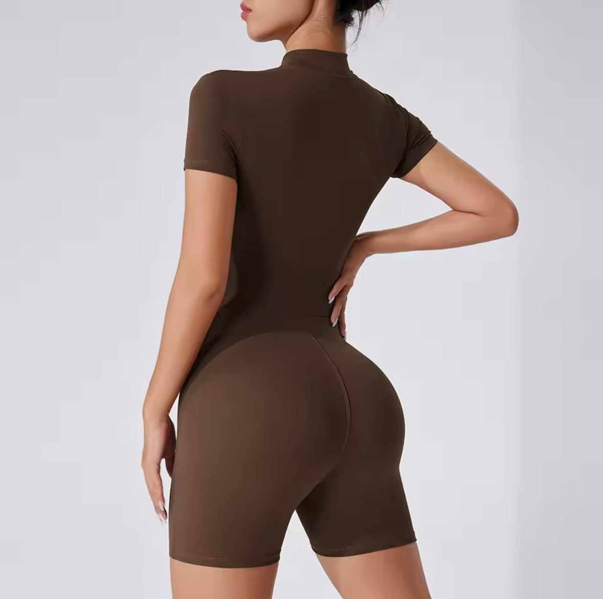 Womens Outfits Sportswear Sports Jumpsuit Woman Short Fitness Overalls With Padding Workout Clothes for Women Gym Sets Half Zip